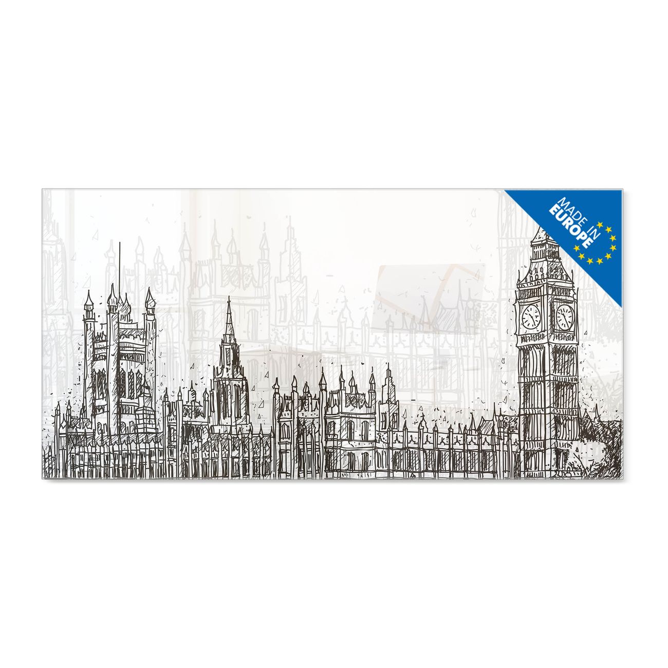 Ein Stück Design, das Ihren Alltag organisiert. Schreiben, heften, inspirieren - alles an einem Ort. Qualität, die man spürt. Montage leicht gemacht. Handwerk mit Herz - veredelt in Sachsen. Einzigartiges Design mit Motiv Motiv London Skyline Skizze Beschreibbare Glasoberfläche, leicht zu reinigen Starke Magnetkraft durch Stahlrückwand Inklusive 4 Neodym-Magneten Flexible Montageoptionen Handveredelt in Sachsen - Qualität, die bleibt