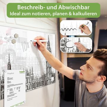 Gefertigt aus gehärtetem Sicherheitsglas mit einer magnetischen Rückwand aus Stahl überzeugt diese Magnettafel durch Stabilität und Langlebigkeit. Die Oberfläche bleibt dauerhaft brillant und pflegeleicht, selbst bei täglicher Nutzung.