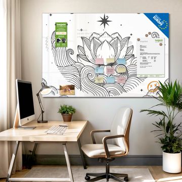Glas Magnettafel im Querformat Motiv Lotus und Mondphasen 2