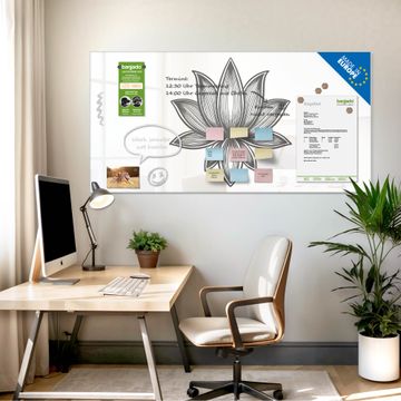 Die banjado Glas Magnettafel mit dem Motiv Motiv Lotusblüte 10 verbindet Funktionalität mit Stil. Sie ersetzt das Zettelchaos durch klare Strukturen und bringt dabei eine warme, natürliche Atmosphäre in Ihr Zuhause. Ob im Büro, in der Küche oder im Eingangsbereich - dieses Design-Board zieht Blicke an und sorgt für Ordnung mit Charakter.