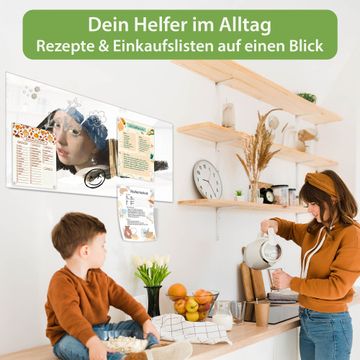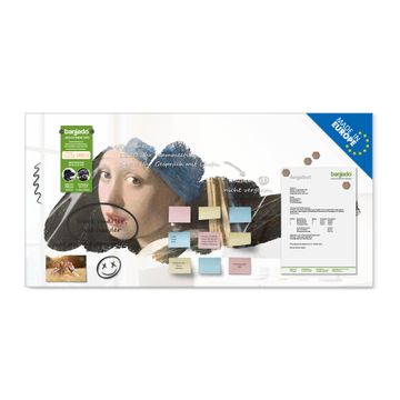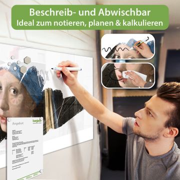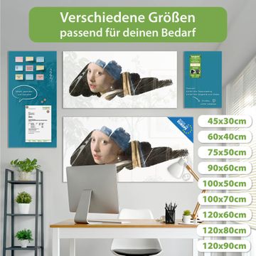 Die banjado Glas Magnettafel mit dem Motiv Motiv Mädchen mit dem Perlenohrring verbindet Funktionalität mit Stil. Sie ersetzt das Zettelchaos durch klare Strukturen und bringt dabei eine warme, natürliche Atmosphäre in Ihr Zuhause. Ob im Büro, in der Küche oder im Eingangsbereich - dieses Design-Board zieht Blicke an und sorgt für Ordnung mit Charakter.