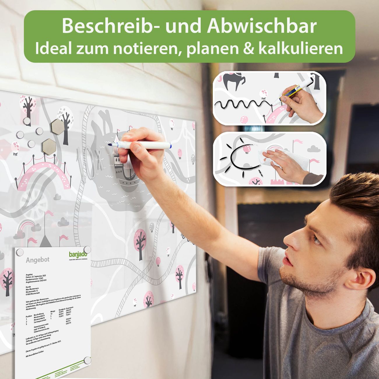 Jede Glas Magnettafel wird in unserer Werkstatt von Hand gefertigt und sorgfältig geprüft. So erhalten Sie ein echtes Qualitätsprodukt, das Funktion und Ästhetik perfekt vereint.?? Warum banjado?