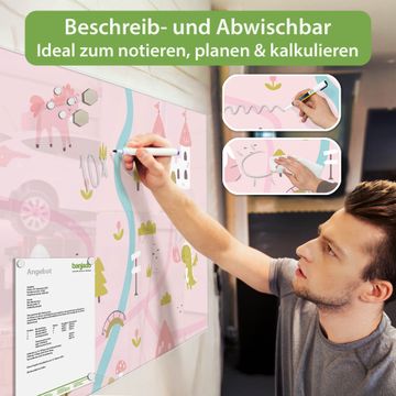 Auf der glatten Glasoberfläche lassen sich Termine, Rezepte oder Notizen ganz einfach mit Kreidestiften festhalten und rückstandslos entfernen. Starke Neodym-Magnete halten Ihre wichtigsten Erinnerungen sicher an Ort und Stelle. So entsteht Ihre ganz persönliche Ideenwand - jeden Tag neu.