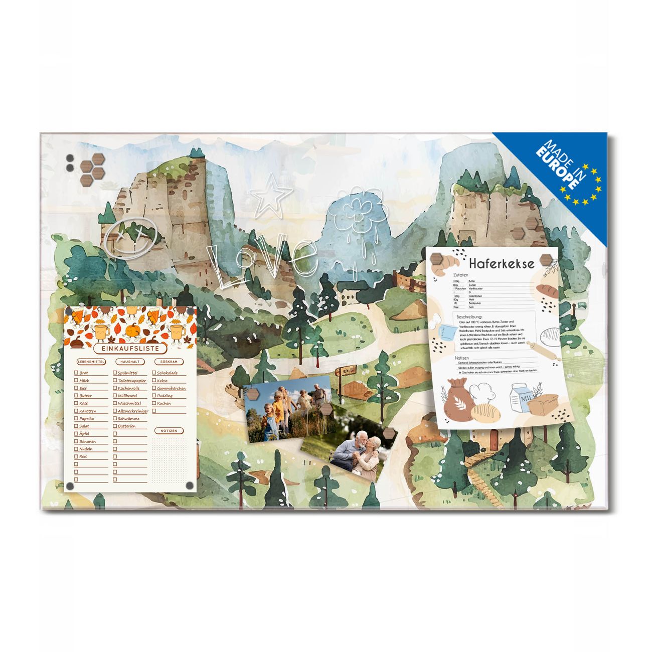 Ein Stück Design, das Ihren Alltag organisiert. Schreiben, heften, inspirieren - alles an einem Ort. Qualität, die man spürt. Montage leicht gemacht. Handwerk mit Herz - veredelt in Sachsen. Einzigartiges Design mit Motiv Motiv Märchendorf 3 Beschreibbare Glasoberfläche, leicht zu reinigen Starke Magnetkraft durch Stahlrückwand Inklusive 4 Neodym-Magneten Flexible Montageoptionen Handveredelt in Sachsen - Qualität, die bleibt