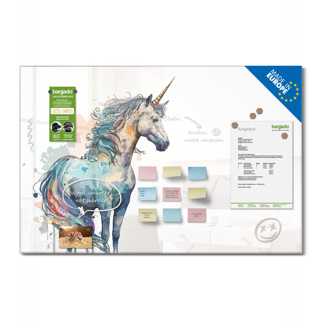 Glas Magnettafel im Querformat Motiv Magisches Einhorn