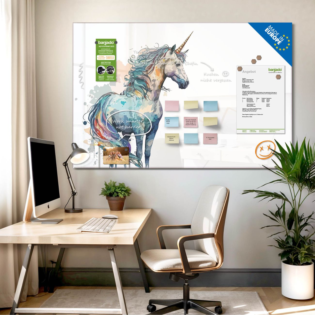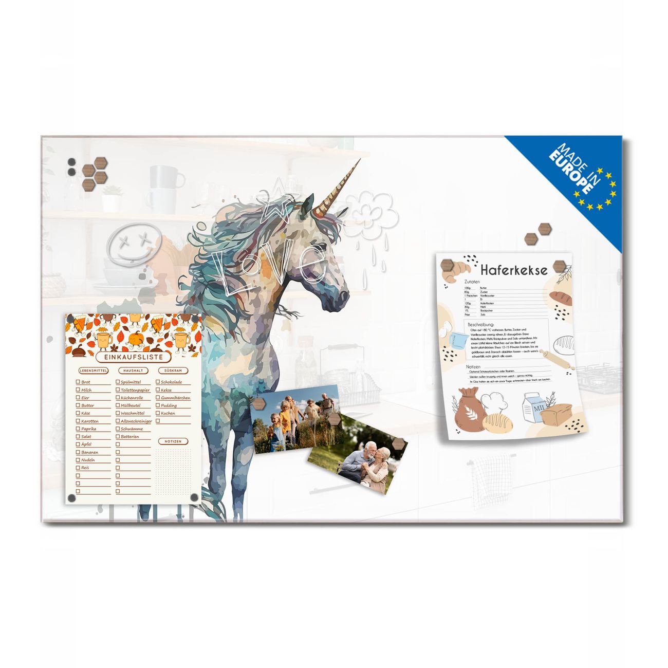 Glas Magnettafel im Querformat Motiv Magisches Einhorn