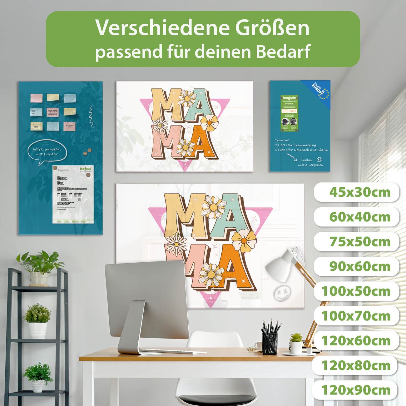 Jede Glas Magnettafel wird in unserer Werkstatt von Hand gefertigt und sorgfältig geprüft. So erhalten Sie ein echtes Qualitätsprodukt, das Funktion und Ästhetik perfekt vereint.?? Warum banjado?