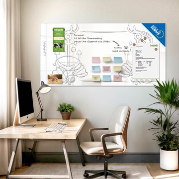 Auf der glatten Glasoberfläche lassen sich Termine, Rezepte oder Notizen ganz einfach mit Kreidestiften festhalten und rückstandslos entfernen. Starke Neodym-Magnete halten Ihre wichtigsten Erinnerungen sicher an Ort und Stelle. So entsteht Ihre ganz persönliche Ideenwand - jeden Tag neu.