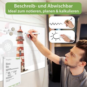 Die banjado Glas Magnettafel mit dem Motiv Motiv Maritimer Leuchtturm verbindet Funktionalität mit Stil. Sie ersetzt das Zettelchaos durch klare Strukturen und bringt dabei eine warme, natürliche Atmosphäre in Ihr Zuhause. Ob im Büro, in der Küche oder im Eingangsbereich - dieses Design-Board zieht Blicke an und sorgt für Ordnung mit Charakter.