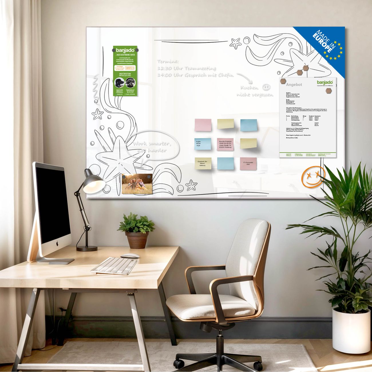 Die banjado Glas Magnettafel mit dem Motiv Motiv Maritimer Seesternrahmen verbindet Funktionalität mit Stil. Sie ersetzt das Zettelchaos durch klare Strukturen und bringt dabei eine warme, natürliche Atmosphäre in Ihr Zuhause. Ob im Büro, in der Küche oder im Eingangsbereich - dieses Design-Board zieht Blicke an und sorgt für Ordnung mit Charakter.