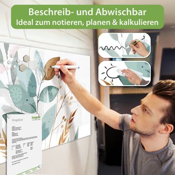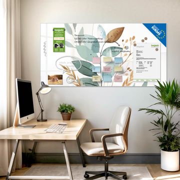 Die banjado Glas Magnettafel mit dem Motiv Motiv Minimalistische Blätter verbindet Funktionalität mit Stil. Sie ersetzt das Zettelchaos durch klare Strukturen und bringt dabei eine warme, natürliche Atmosphäre in Ihr Zuhause. Ob im Büro, in der Küche oder im Eingangsbereich - dieses Design-Board zieht Blicke an und sorgt für Ordnung mit Charakter.