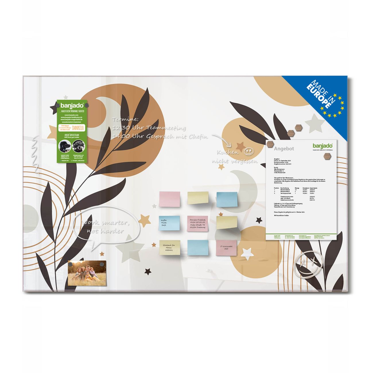 Die banjado Glas Magnettafel mit dem Motiv Motiv Mond und Blätter Komposition verbindet Funktionalität mit Stil. Sie ersetzt das Zettelchaos durch klare Strukturen und bringt dabei eine warme, natürliche Atmosphäre in Ihr Zuhause. Ob im Büro, in der Küche oder im Eingangsbereich - dieses Design-Board zieht Blicke an und sorgt für Ordnung mit Charakter.