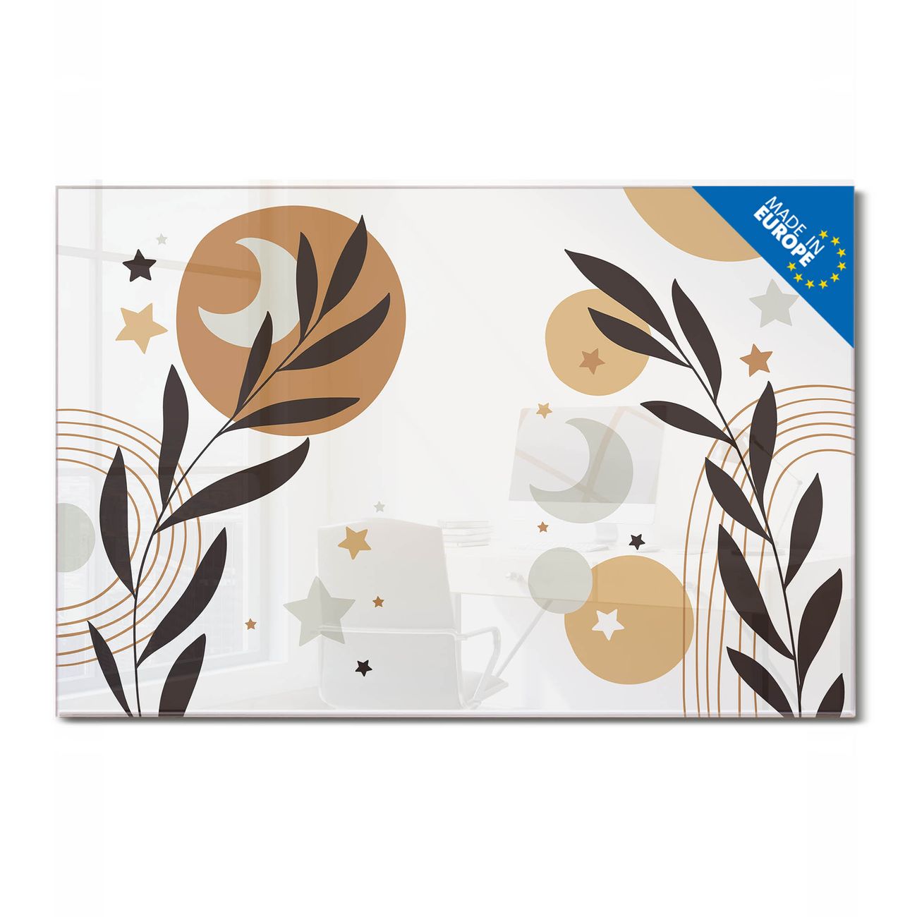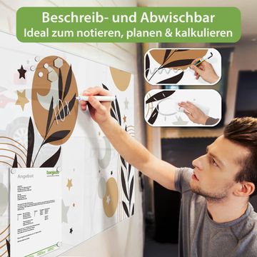 Die banjado Glas Magnettafel mit dem Motiv Motiv Mond und Blätter Komposition verbindet Funktionalität mit Stil. Sie ersetzt das Zettelchaos durch klare Strukturen und bringt dabei eine warme, natürliche Atmosphäre in Ihr Zuhause. Ob im Büro, in der Küche oder im Eingangsbereich - dieses Design-Board zieht Blicke an und sorgt für Ordnung mit Charakter.