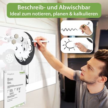 Auf der glatten Glasoberfläche lassen sich Termine, Rezepte oder Notizen ganz einfach mit Kreidestiften festhalten und rückstandslos entfernen. Starke Neodym-Magnete halten Ihre wichtigsten Erinnerungen sicher an Ort und Stelle. So entsteht Ihre ganz persönliche Ideenwand - jeden Tag neu.