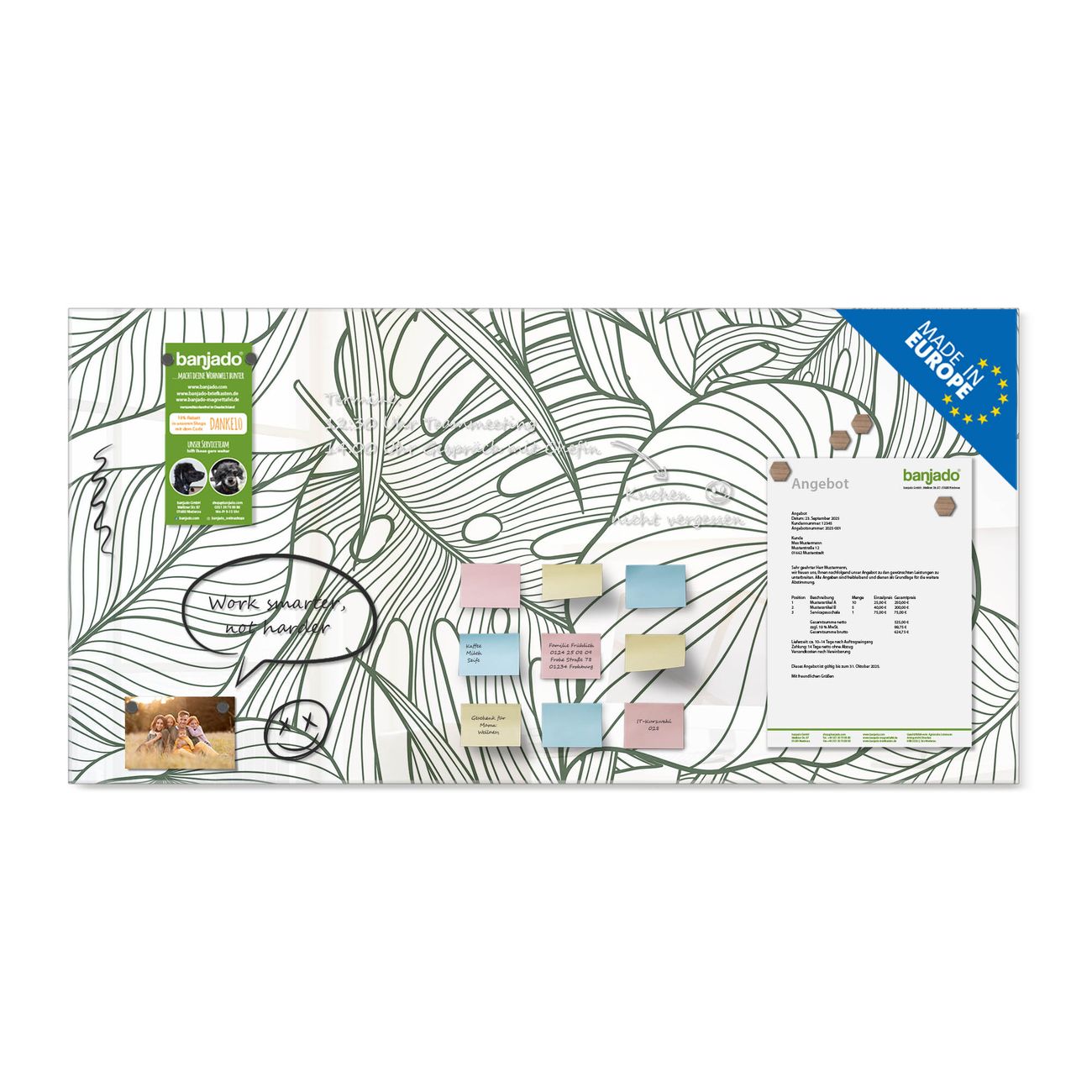 Die banjado Glas Magnettafel mit dem Motiv Motiv Monstera 2 verbindet Funktionalität mit Stil. Sie ersetzt das Zettelchaos durch klare Strukturen und bringt dabei eine warme, natürliche Atmosphäre in Ihr Zuhause. Ob im Büro, in der Küche oder im Eingangsbereich - dieses Design-Board zieht Blicke an und sorgt für Ordnung mit Charakter.