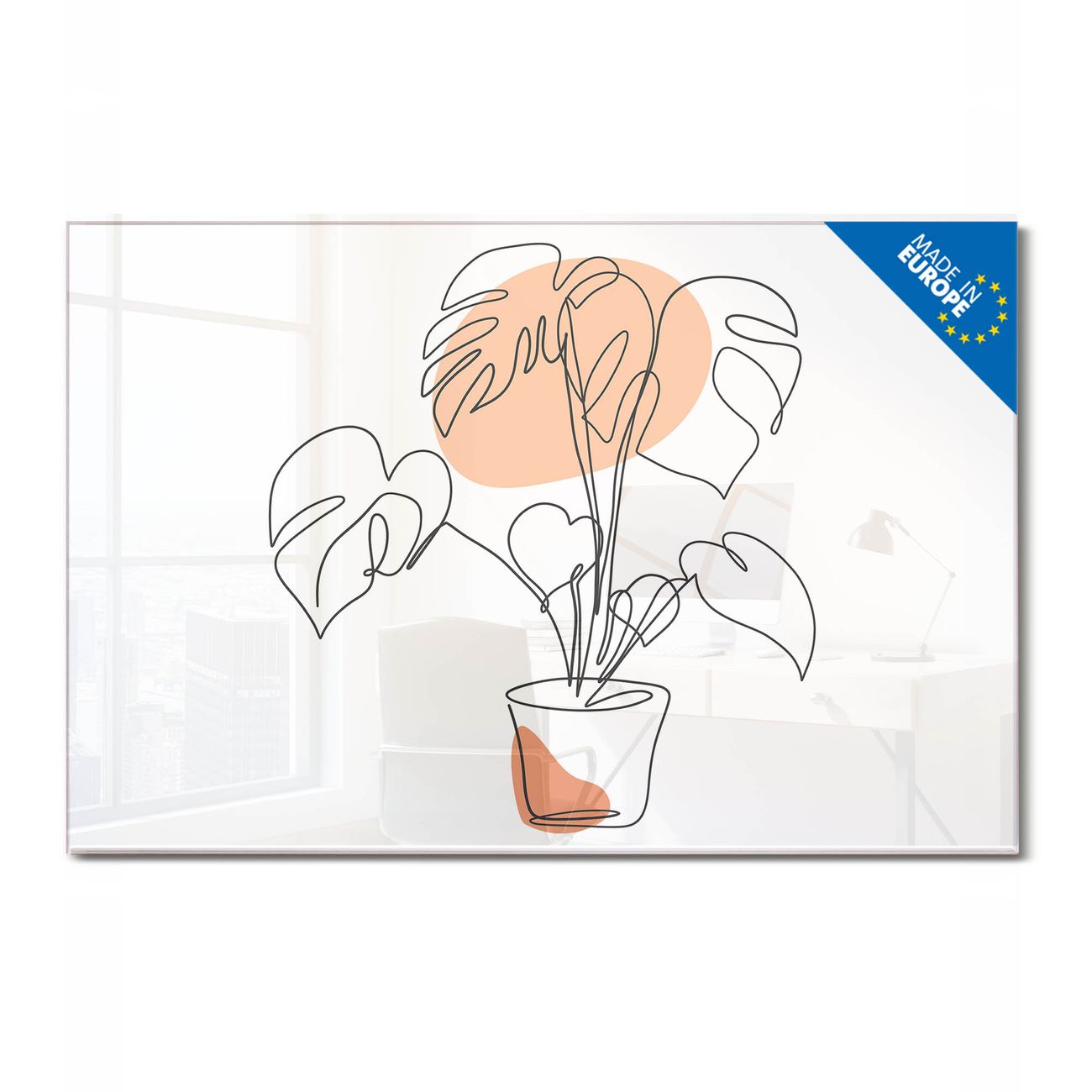 Glas Magnettafel im Querformat Motiv Monstera Skizze
