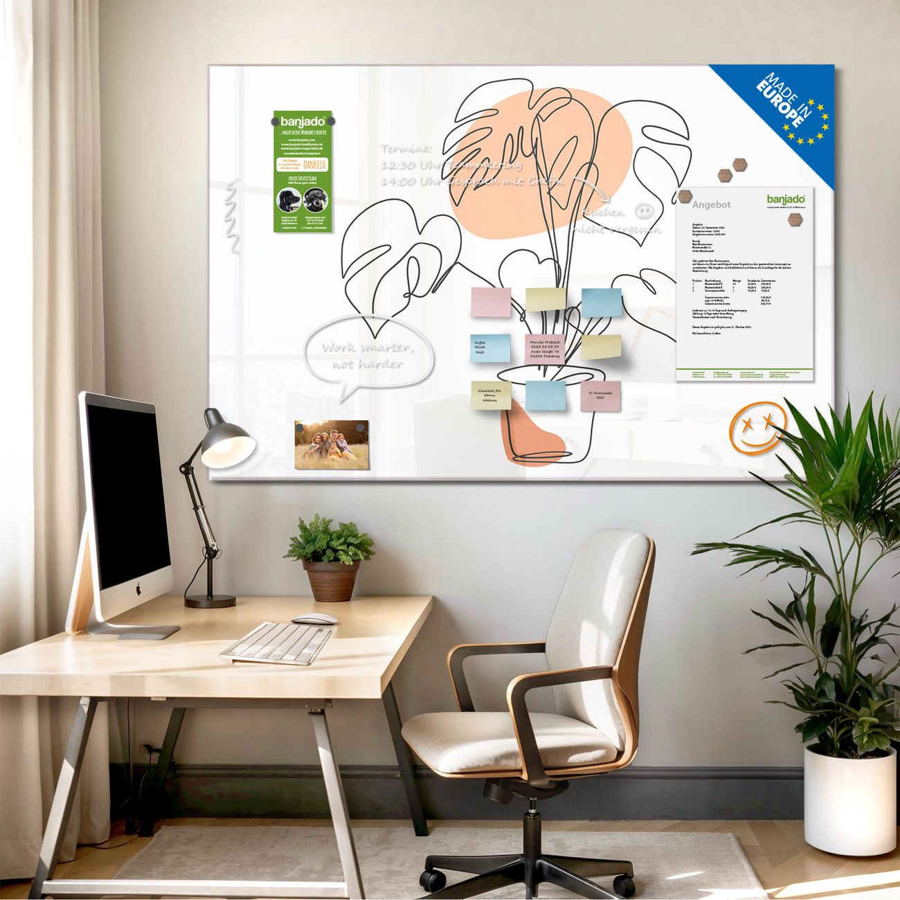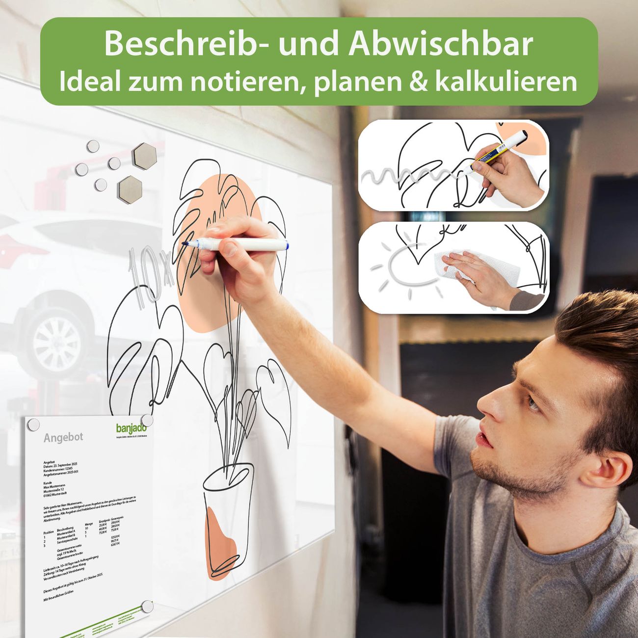 Jede Glas Magnettafel wird in unserer Werkstatt von Hand gefertigt und sorgfältig geprüft. So erhalten Sie ein echtes Qualitätsprodukt, das Funktion und Ästhetik perfekt vereint.?? Warum banjado?