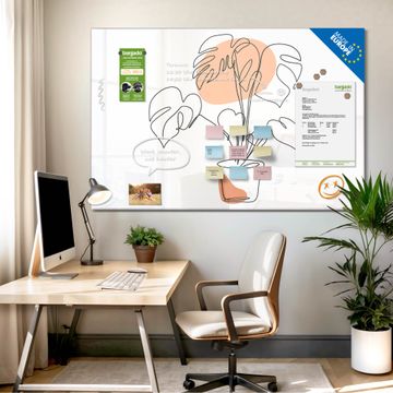 Die banjado Glas Magnettafel mit dem Motiv Motiv Monstera Skizze verbindet Funktionalität mit Stil. Sie ersetzt das Zettelchaos durch klare Strukturen und bringt dabei eine warme, natürliche Atmosphäre in Ihr Zuhause. Ob im Büro, in der Küche oder im Eingangsbereich - dieses Design-Board zieht Blicke an und sorgt für Ordnung mit Charakter.