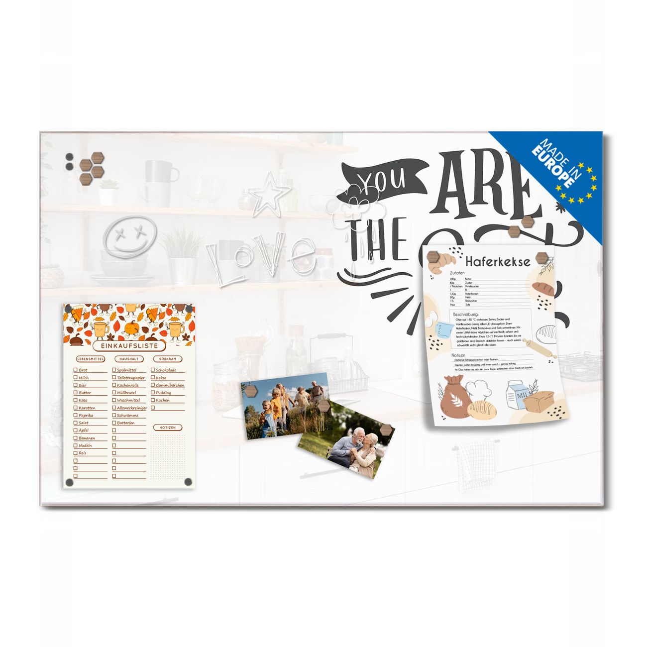 Ein Stück Design, das Ihren Alltag organisiert. Schreiben, heften, inspirieren - alles an einem Ort. Qualität, die man spürt. Montage leicht gemacht. Handwerk mit Herz - veredelt in Sachsen. Einzigartiges Design mit Motiv Motiv Motivationsspruch Beschreibbare Glasoberfläche, leicht zu reinigen Starke Magnetkraft durch Stahlrückwand Inklusive 4 Neodym-Magneten Flexible Montageoptionen Handveredelt in Sachsen - Qualität, die bleibt