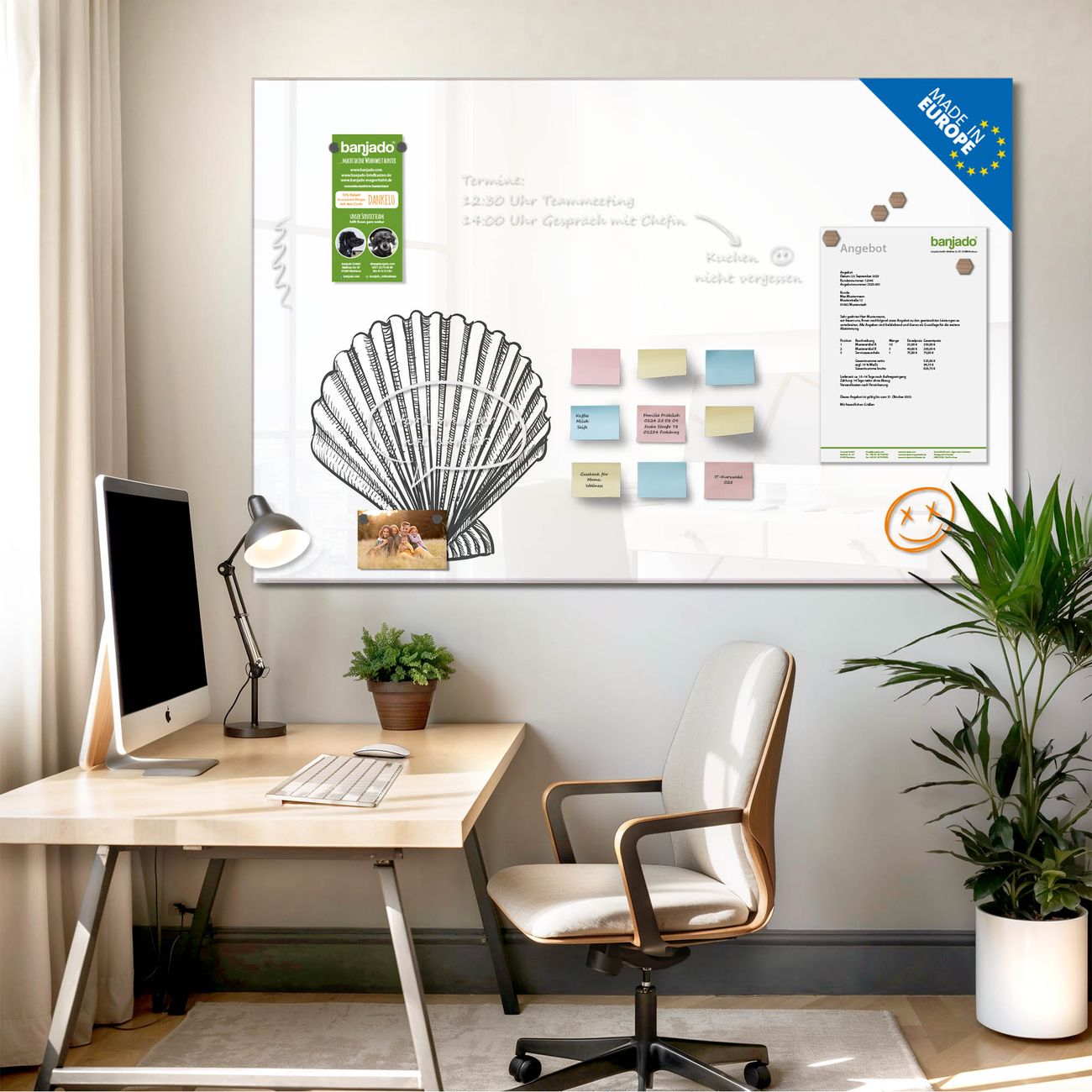 Die banjado Glas Magnettafel mit dem Motiv Motiv Muschel 6 verbindet Funktionalität mit Stil. Sie ersetzt das Zettelchaos durch klare Strukturen und bringt dabei eine warme, natürliche Atmosphäre in Ihr Zuhause. Ob im Büro, in der Küche oder im Eingangsbereich - dieses Design-Board zieht Blicke an und sorgt für Ordnung mit Charakter.