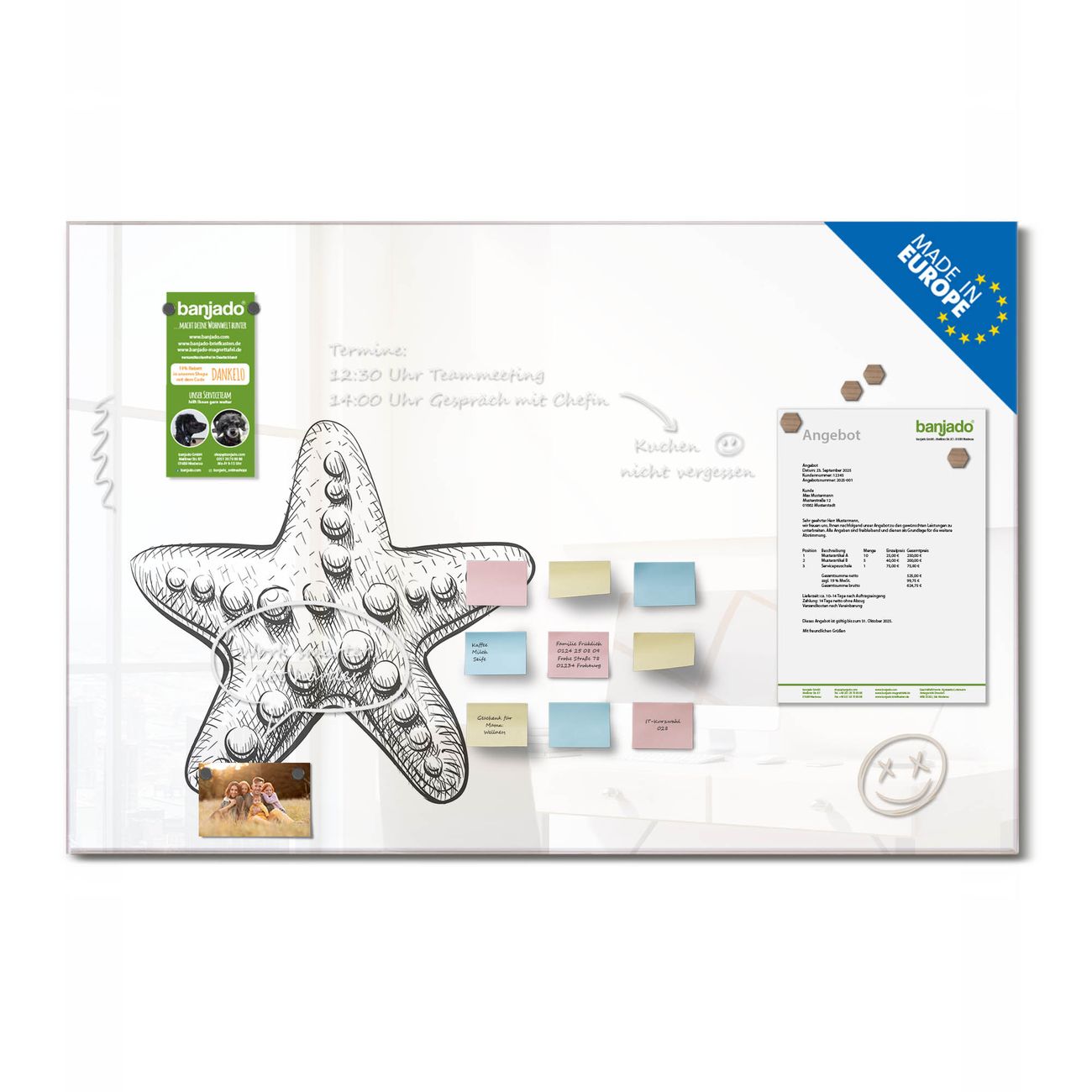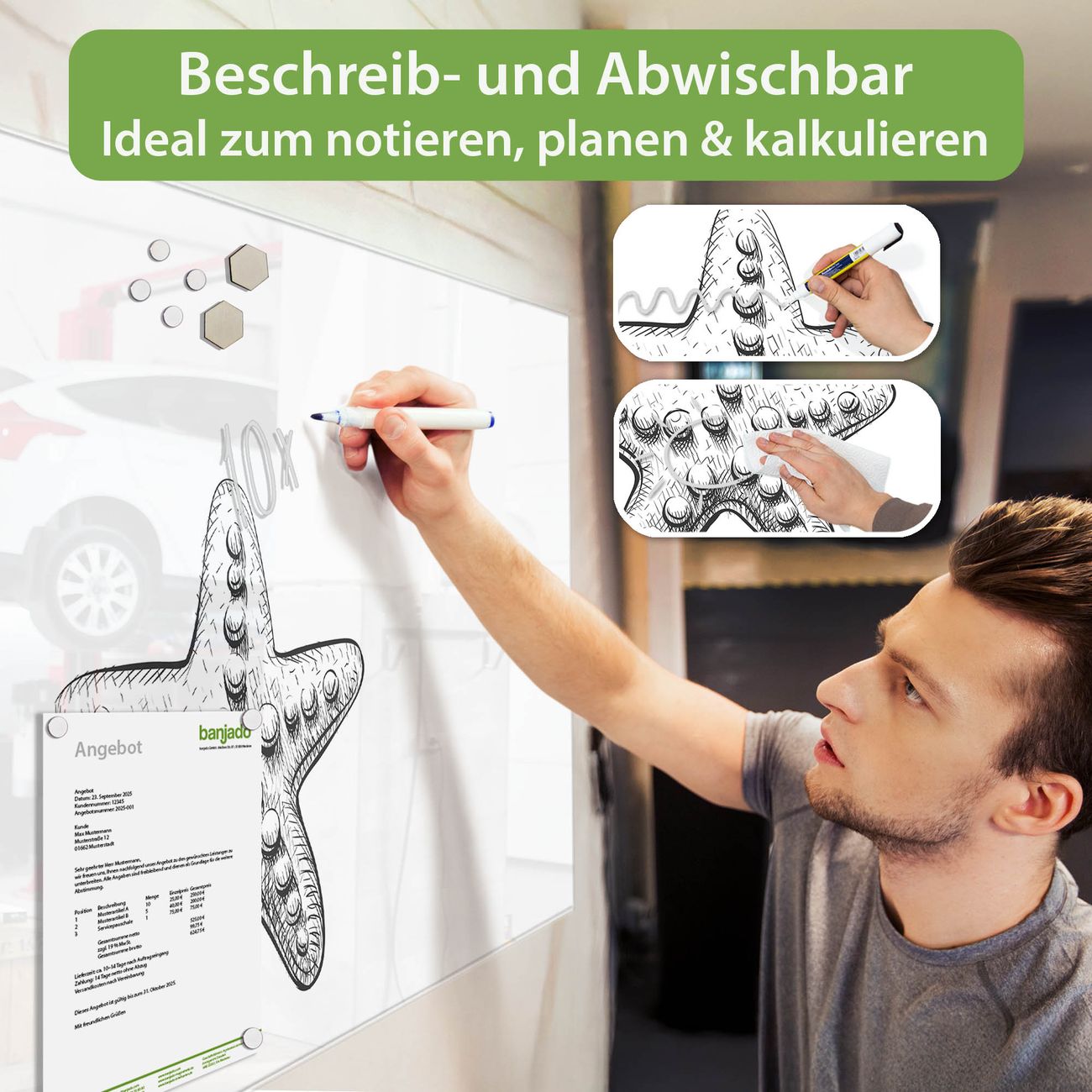 Bitte beachten Sie, dass ausschliessliche spezielle Magnete an der Glastafel haften. Wir empfehlen banjado Neodym Magnete, diese sind durch uns auf Wirksamkeit geprüft.