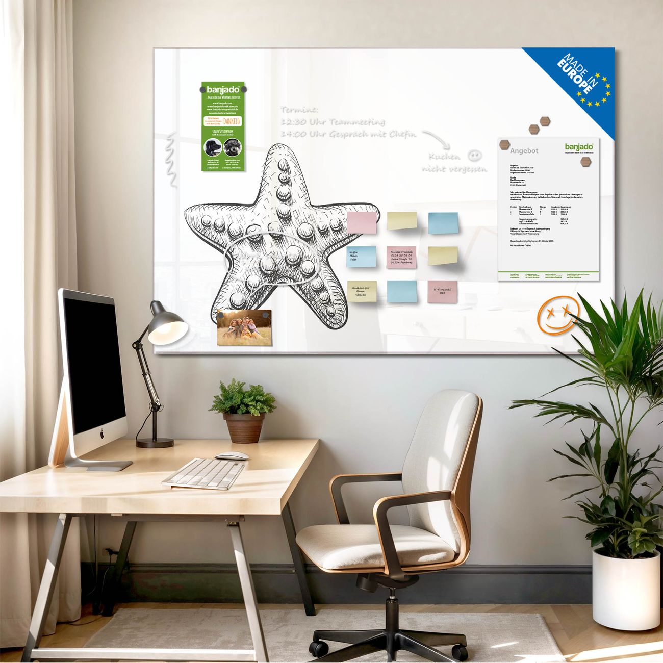 Jede Glas Magnettafel wird in unserer Werkstatt von Hand gefertigt und sorgfältig geprüft. So erhalten Sie ein echtes Qualitätsprodukt, das Funktion und Ästhetik perfekt vereint.?? Warum banjado?