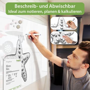Gefertigt aus gehärtetem Sicherheitsglas mit einer magnetischen Rückwand aus Stahl überzeugt diese Magnettafel durch Stabilität und Langlebigkeit. Die Oberfläche bleibt dauerhaft brillant und pflegeleicht, selbst bei täglicher Nutzung.