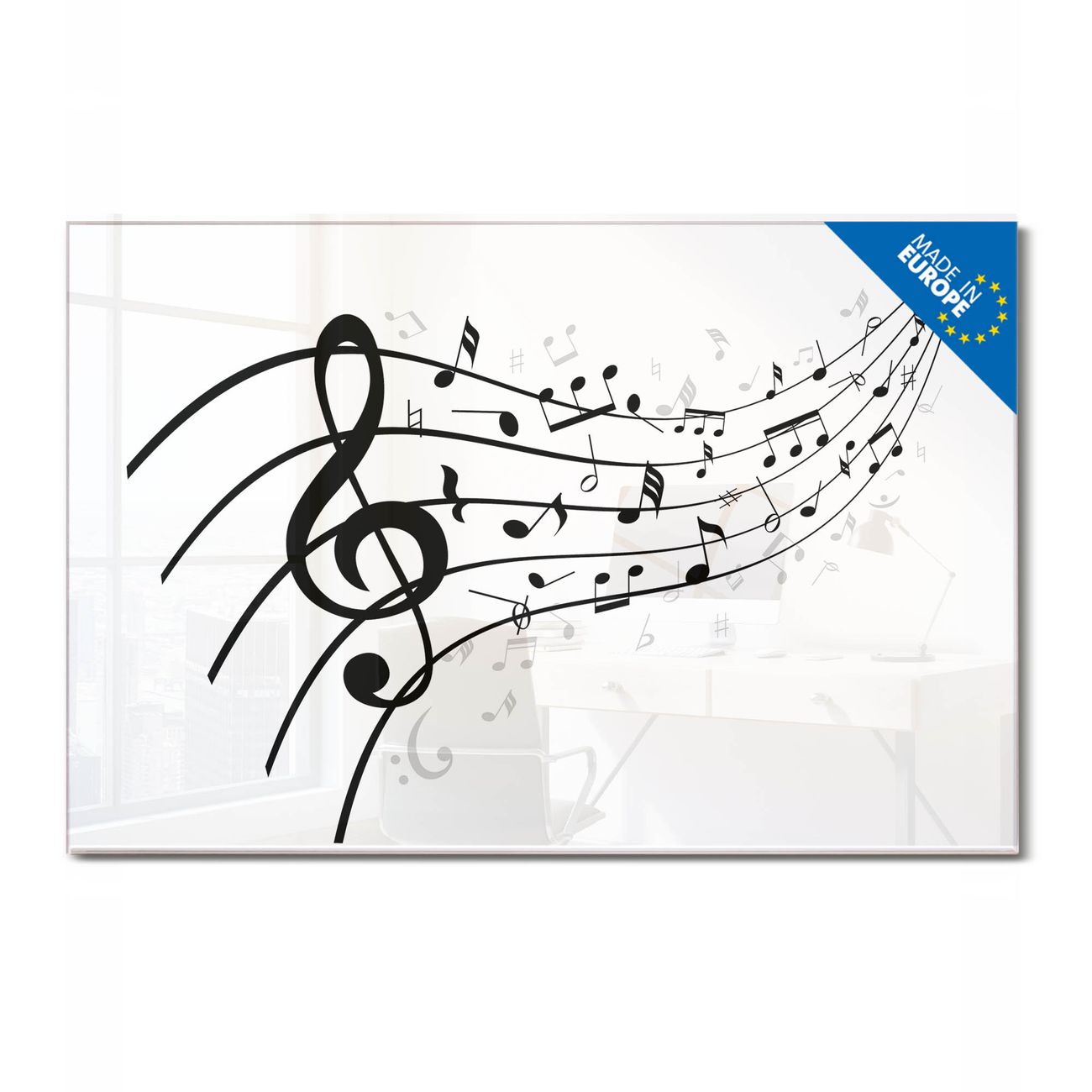 Glas Magnettafel im Querformat Motiv Musikalische Noten