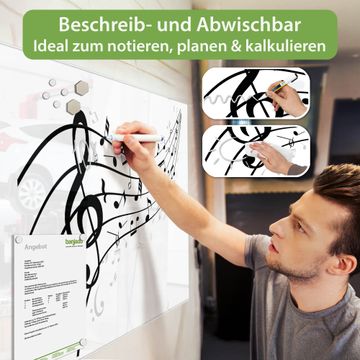 Gefertigt aus gehärtetem Sicherheitsglas mit einer magnetischen Rückwand aus Stahl überzeugt diese Magnettafel durch Stabilität und Langlebigkeit. Die Oberfläche bleibt dauerhaft brillant und pflegeleicht, selbst bei täglicher Nutzung.