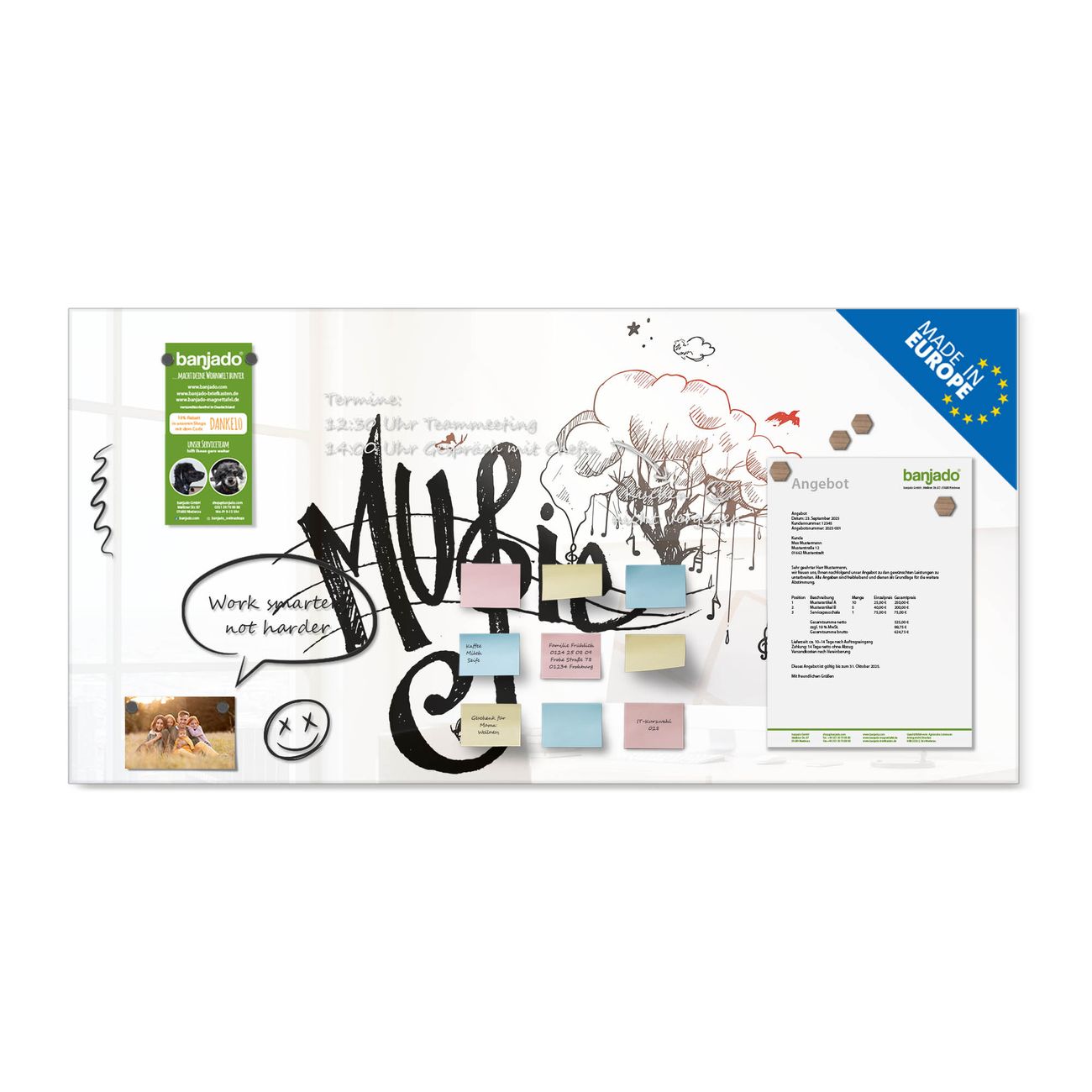 Jede Glas Magnettafel wird in unserer Werkstatt von Hand gefertigt und sorgfältig geprüft. So erhalten Sie ein echtes Qualitätsprodukt, das Funktion und Ästhetik perfekt vereint.?? Warum banjado?