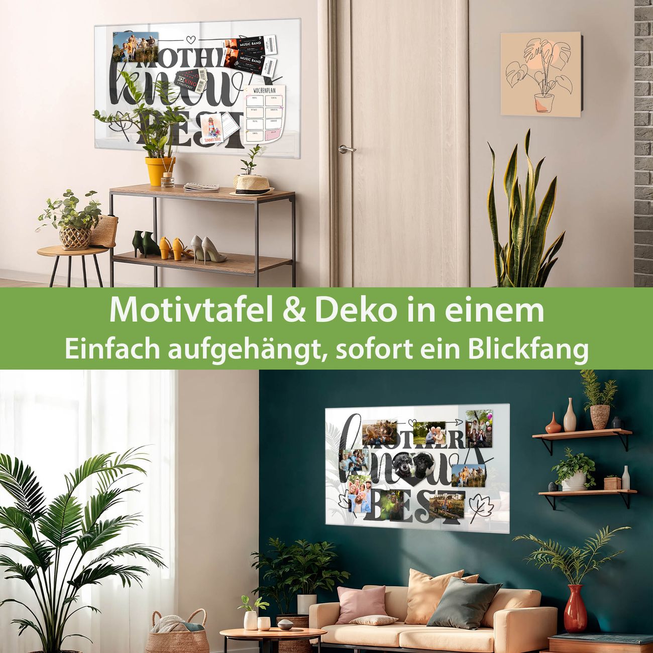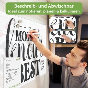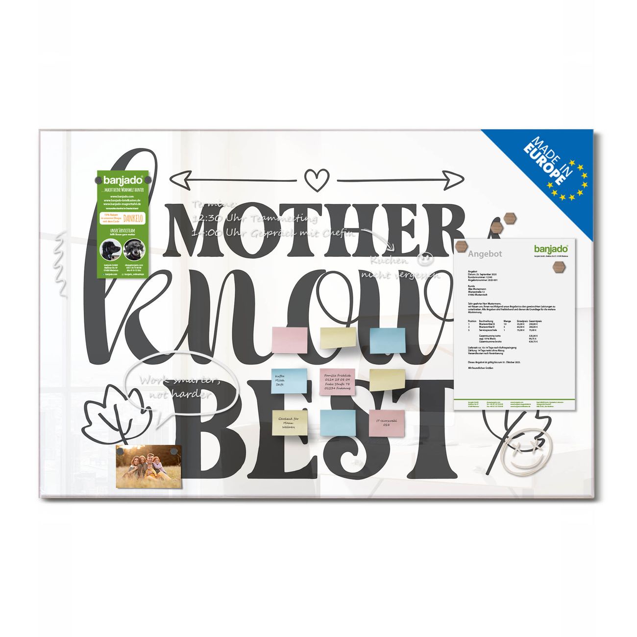 Die banjado Glas Magnettafel mit dem Motiv Motiv Mutter Weisheit verbindet Funktionalität mit Stil. Sie ersetzt das Zettelchaos durch klare Strukturen und bringt dabei eine warme, natürliche Atmosphäre in Ihr Zuhause. Ob im Büro, in der Küche oder im Eingangsbereich - dieses Design-Board zieht Blicke an und sorgt für Ordnung mit Charakter.