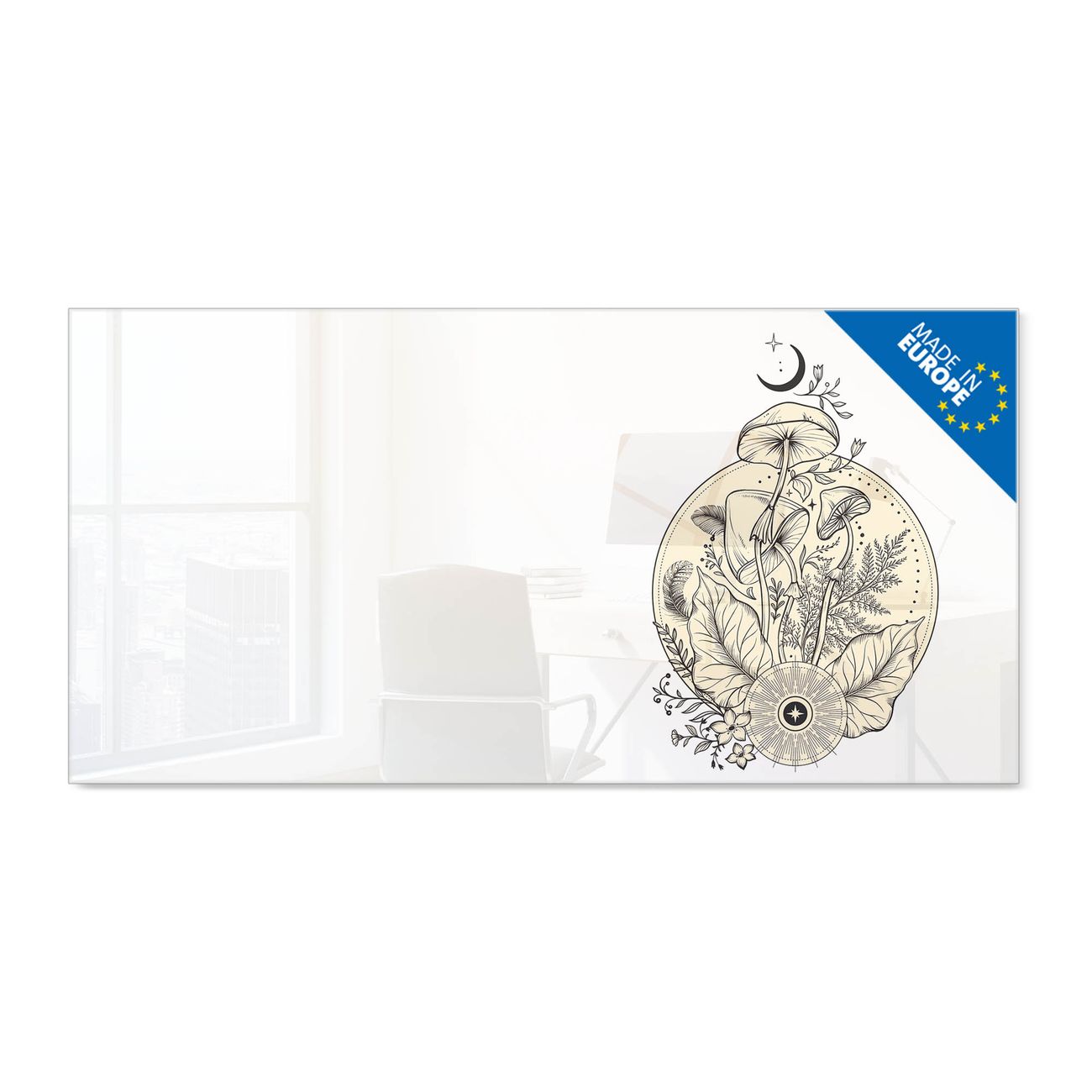 Ein Stück Design, das Ihren Alltag organisiert. Schreiben, heften, inspirieren - alles an einem Ort. Qualität, die man spürt. Montage leicht gemacht. Handwerk mit Herz - veredelt in Sachsen. Einzigartiges Design mit Motiv Motiv Mystische Natur Beschreibbare Glasoberfläche, leicht zu reinigen Starke Magnetkraft durch Stahlrückwand Inklusive 4 Neodym-Magneten Flexible Montageoptionen Handveredelt in Sachsen - Qualität, die bleibt