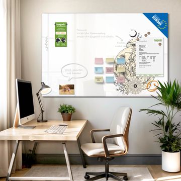 Auf der glatten Glasoberfläche lassen sich Termine, Rezepte oder Notizen ganz einfach mit Kreidestiften festhalten und rückstandslos entfernen. Starke Neodym-Magnete halten Ihre wichtigsten Erinnerungen sicher an Ort und Stelle. So entsteht Ihre ganz persönliche Ideenwand - jeden Tag neu.