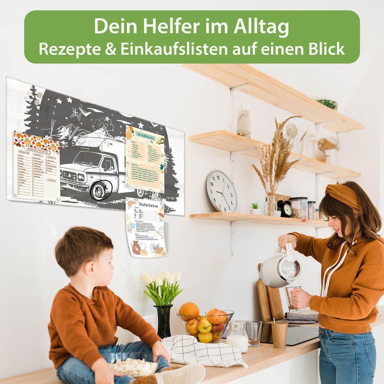 Auf der glatten Glasoberfläche lassen sich Termine, Rezepte oder Notizen ganz einfach mit Kreidestiften festhalten und rückstandslos entfernen. Starke Neodym-Magnete halten Ihre wichtigsten Erinnerungen sicher an Ort und Stelle. So entsteht Ihre ganz persönliche Ideenwand - jeden Tag neu.