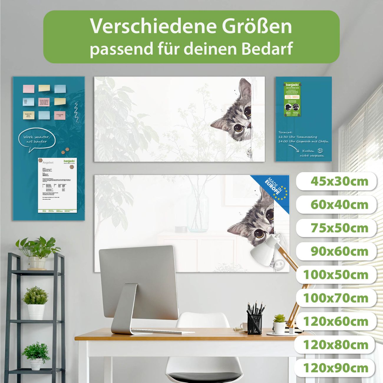 Jede Glas Magnettafel wird in unserer Werkstatt von Hand gefertigt und sorgfältig geprüft. So erhalten Sie ein echtes Qualitätsprodukt, das Funktion und Ästhetik perfekt vereint.?? Warum banjado?