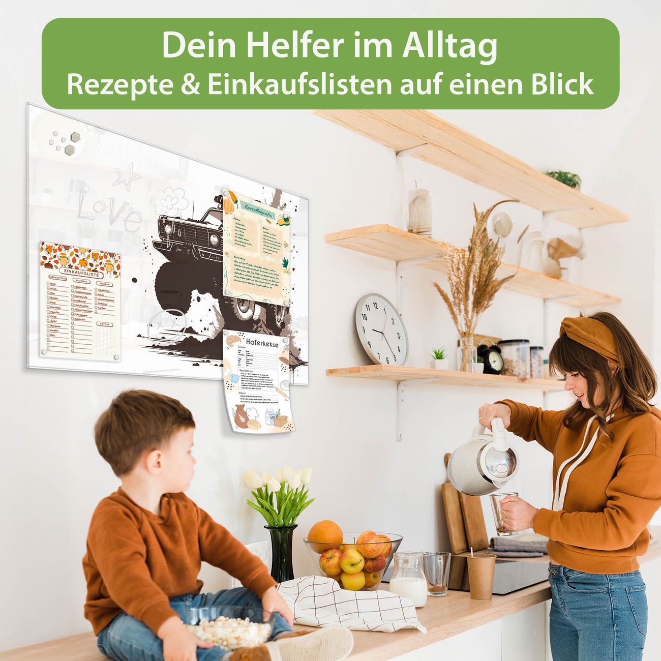 Die banjado Glas Magnettafel mit dem Motiv Motiv Offroad Abenteuer 3 verbindet Funktionalität mit Stil. Sie ersetzt das Zettelchaos durch klare Strukturen und bringt dabei eine warme, natürliche Atmosphäre in Ihr Zuhause. Ob im Büro, in der Küche oder im Eingangsbereich - dieses Design-Board zieht Blicke an und sorgt für Ordnung mit Charakter.