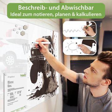 Gefertigt aus gehärtetem Sicherheitsglas mit einer magnetischen Rückwand aus Stahl überzeugt diese Magnettafel durch Stabilität und Langlebigkeit. Die Oberfläche bleibt dauerhaft brillant und pflegeleicht, selbst bei täglicher Nutzung.