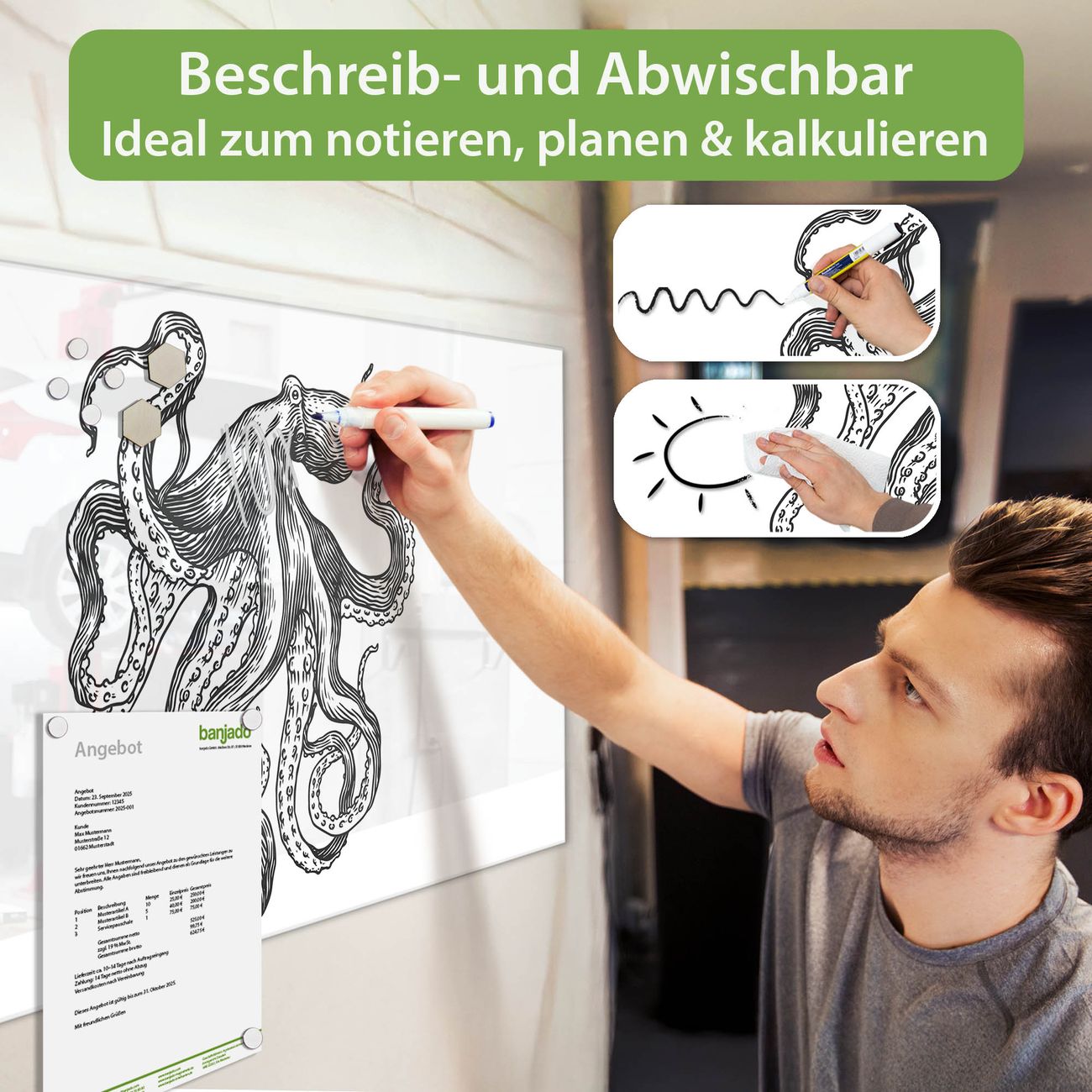 Die banjado Glas Magnettafel mit dem Motiv Motiv Oktopus 10 verbindet Funktionalität mit Stil. Sie ersetzt das Zettelchaos durch klare Strukturen und bringt dabei eine warme, natürliche Atmosphäre in Ihr Zuhause. Ob im Büro, in der Küche oder im Eingangsbereich - dieses Design-Board zieht Blicke an und sorgt für Ordnung mit Charakter.