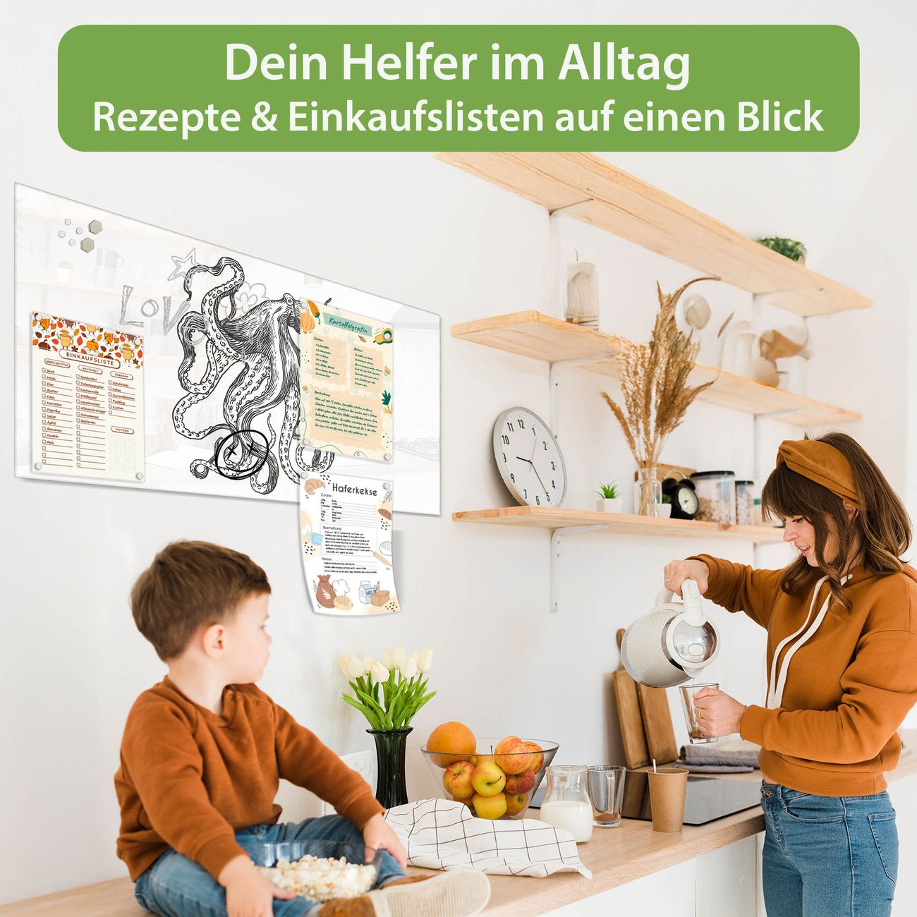 Ein Stück Design, das Ihren Alltag organisiert. Schreiben, heften, inspirieren - alles an einem Ort. Qualität, die man spürt. Montage leicht gemacht. Handwerk mit Herz - veredelt in Sachsen. Einzigartiges Design mit Motiv Motiv Oktopus 10 Beschreibbare Glasoberfläche, leicht zu reinigen Starke Magnetkraft durch Stahlrückwand Inklusive 4 Neodym-Magneten Flexible Montageoptionen Handveredelt in Sachsen - Qualität, die bleibt