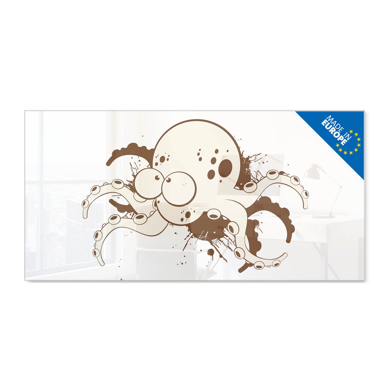 Glas Magnettafel im Querformat Motiv Oktopus Comic 2