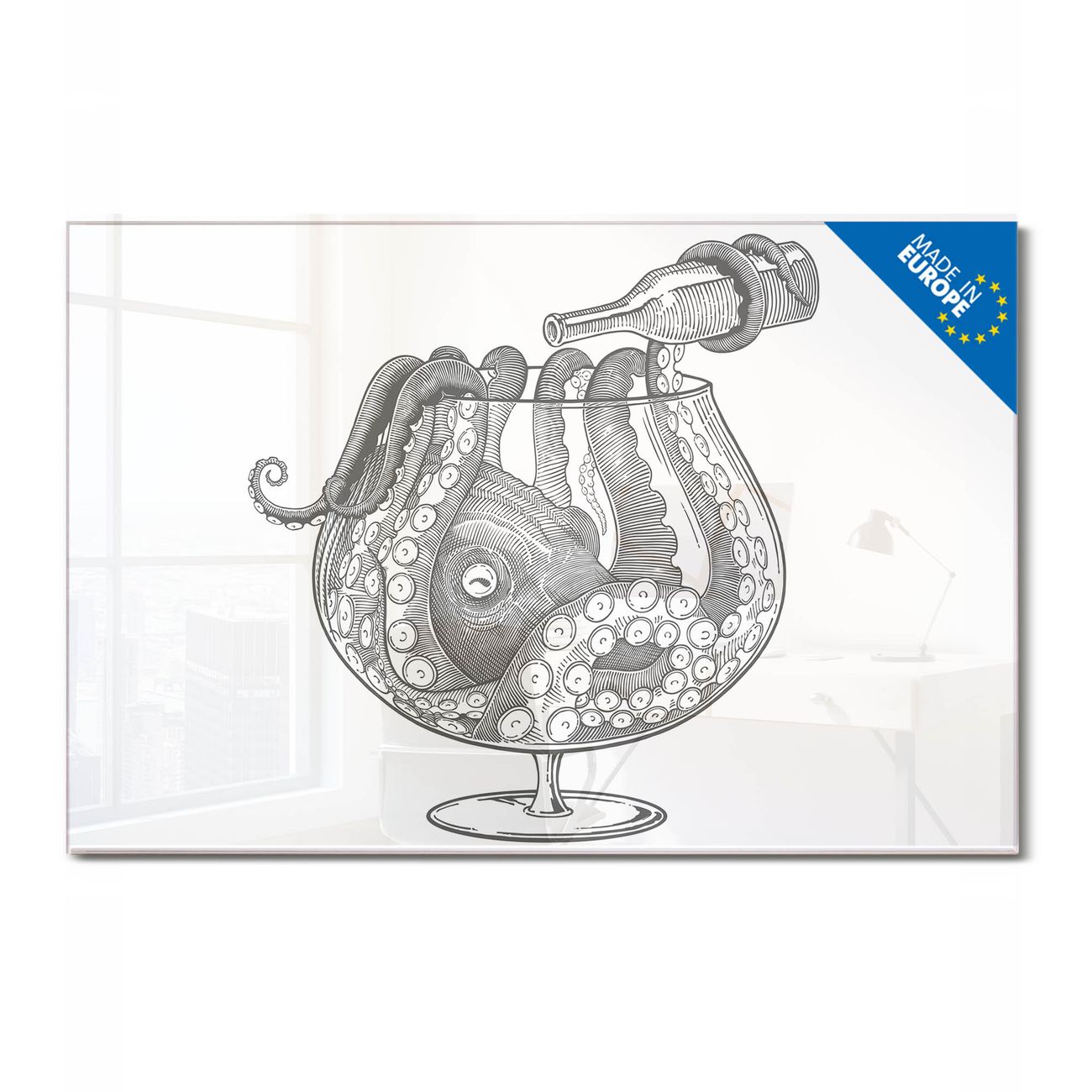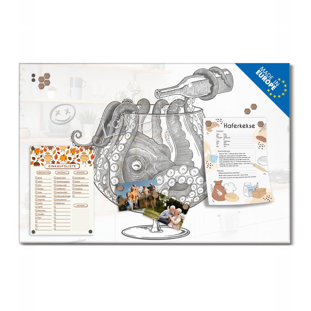 Glas Magnettafel im Querformat Motiv Oktopus im Glas 2