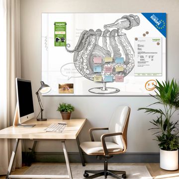 Die banjado Glas Magnettafel mit dem Motiv Motiv Oktopus im Glas 2 verbindet Funktionalität mit Stil. Sie ersetzt das Zettelchaos durch klare Strukturen und bringt dabei eine warme, natürliche Atmosphäre in Ihr Zuhause. Ob im Büro, in der Küche oder im Eingangsbereich - dieses Design-Board zieht Blicke an und sorgt für Ordnung mit Charakter.
