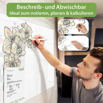Die banjado Glas Magnettafel mit dem Motiv Motiv Orchideenzeichnung verbindet Funktionalität mit Stil. Sie ersetzt das Zettelchaos durch klare Strukturen und bringt dabei eine warme, natürliche Atmosphäre in Ihr Zuhause. Ob im Büro, in der Küche oder im Eingangsbereich - dieses Design-Board zieht Blicke an und sorgt für Ordnung mit Charakter.