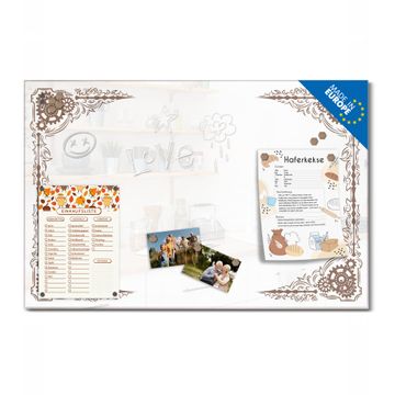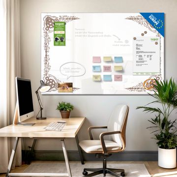 Die banjado Glas Magnettafel mit dem Motiv Motiv Ornamentaler Zahnräderrahmen verbindet Funktionalität mit Stil. Sie ersetzt das Zettelchaos durch klare Strukturen und bringt dabei eine warme, natürliche Atmosphäre in Ihr Zuhause. Ob im Büro, in der Küche oder im Eingangsbereich - dieses Design-Board zieht Blicke an und sorgt für Ordnung mit Charakter.