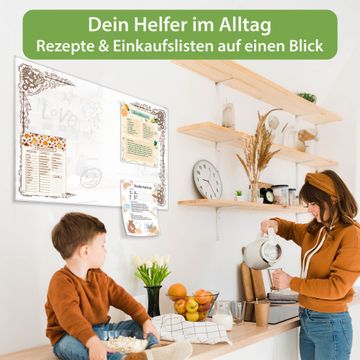 Auf der glatten Glasoberfläche lassen sich Termine, Rezepte oder Notizen ganz einfach mit Kreidestiften festhalten und rückstandslos entfernen. Starke Neodym-Magnete halten Ihre wichtigsten Erinnerungen sicher an Ort und Stelle. So entsteht Ihre ganz persönliche Ideenwand - jeden Tag neu.