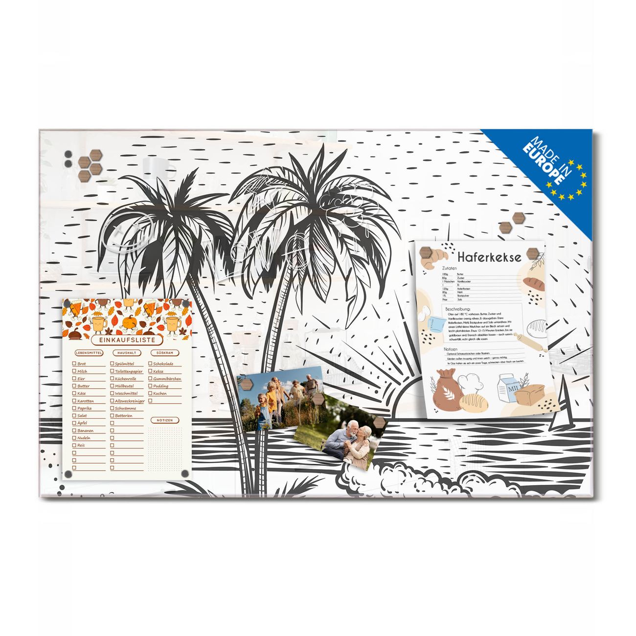 Ein Stück Design, das Ihren Alltag organisiert. Schreiben, heften, inspirieren - alles an einem Ort. Qualität, die man spürt. Montage leicht gemacht. Handwerk mit Herz - veredelt in Sachsen. Einzigartiges Design mit Motiv Motiv Palmenstrand 2 Beschreibbare Glasoberfläche, leicht zu reinigen Starke Magnetkraft durch Stahlrückwand Inklusive 4 Neodym-Magneten Flexible Montageoptionen Handveredelt in Sachsen - Qualität, die bleibt