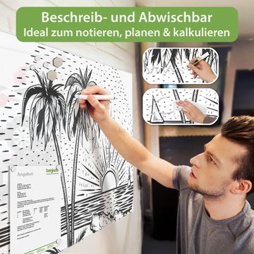 Die banjado Glas Magnettafel mit dem Motiv Motiv Palmenstrand 2 verbindet Funktionalität mit Stil. Sie ersetzt das Zettelchaos durch klare Strukturen und bringt dabei eine warme, natürliche Atmosphäre in Ihr Zuhause. Ob im Büro, in der Küche oder im Eingangsbereich - dieses Design-Board zieht Blicke an und sorgt für Ordnung mit Charakter.