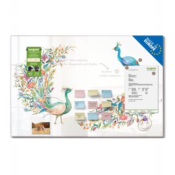 Glas Magnettafel im Querformat Motiv Pfauenparadies