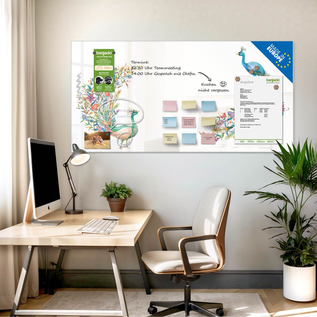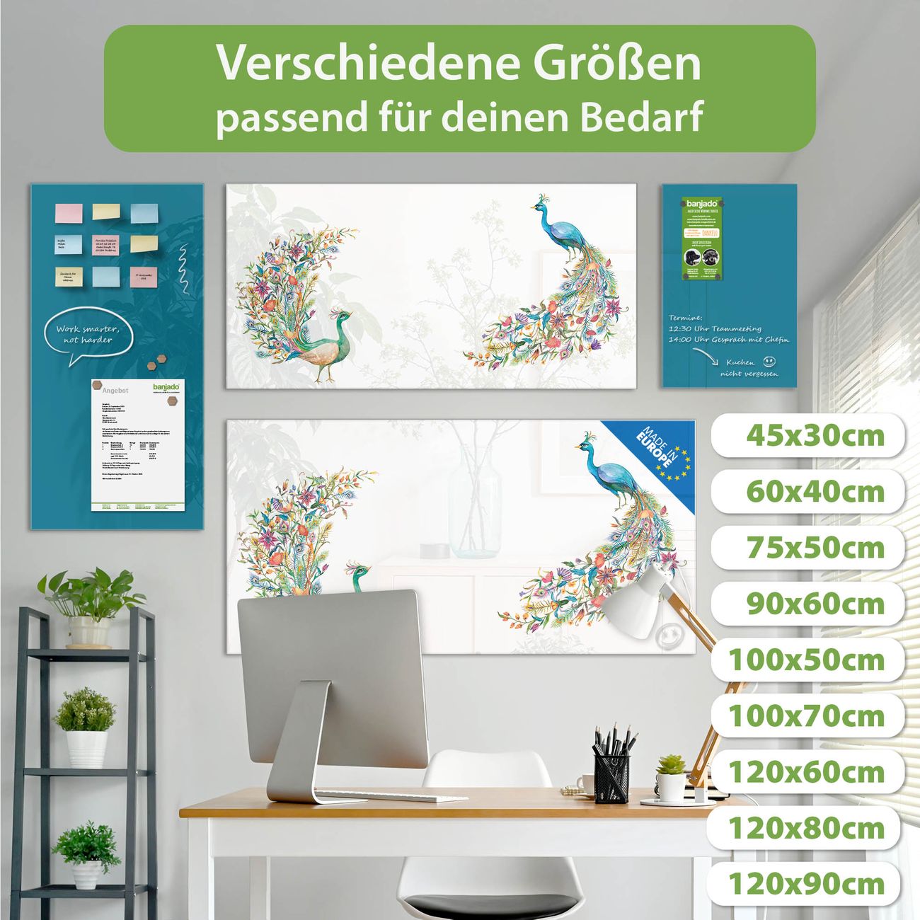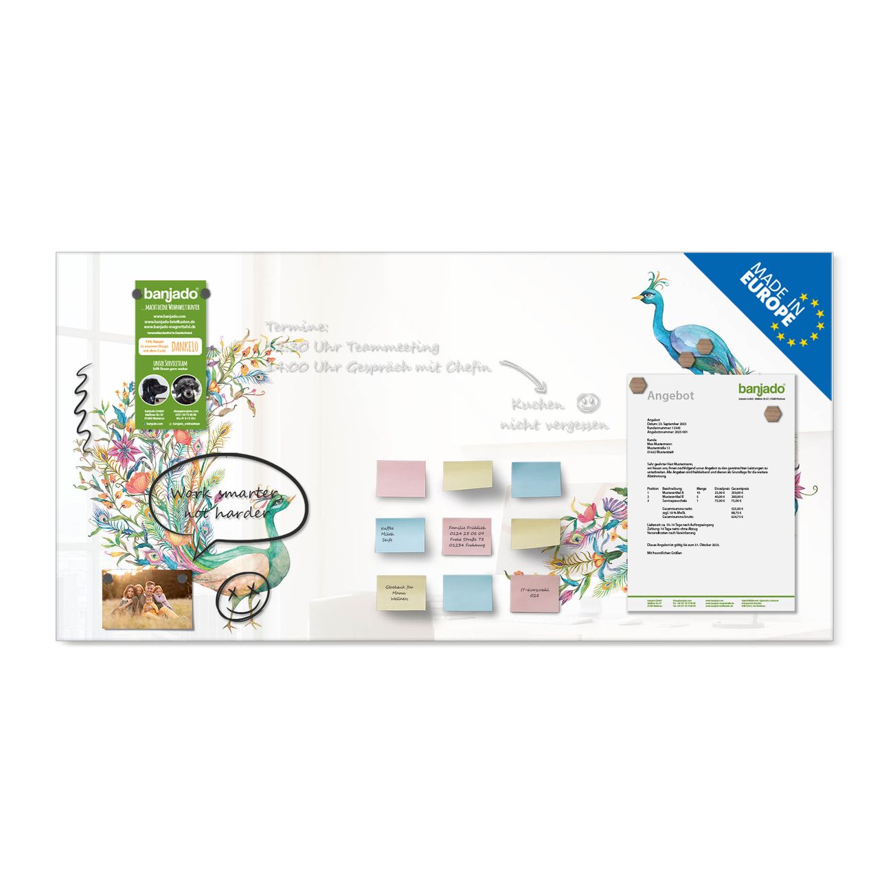 Glas Magnettafel im Querformat Motiv Pfauenparadies