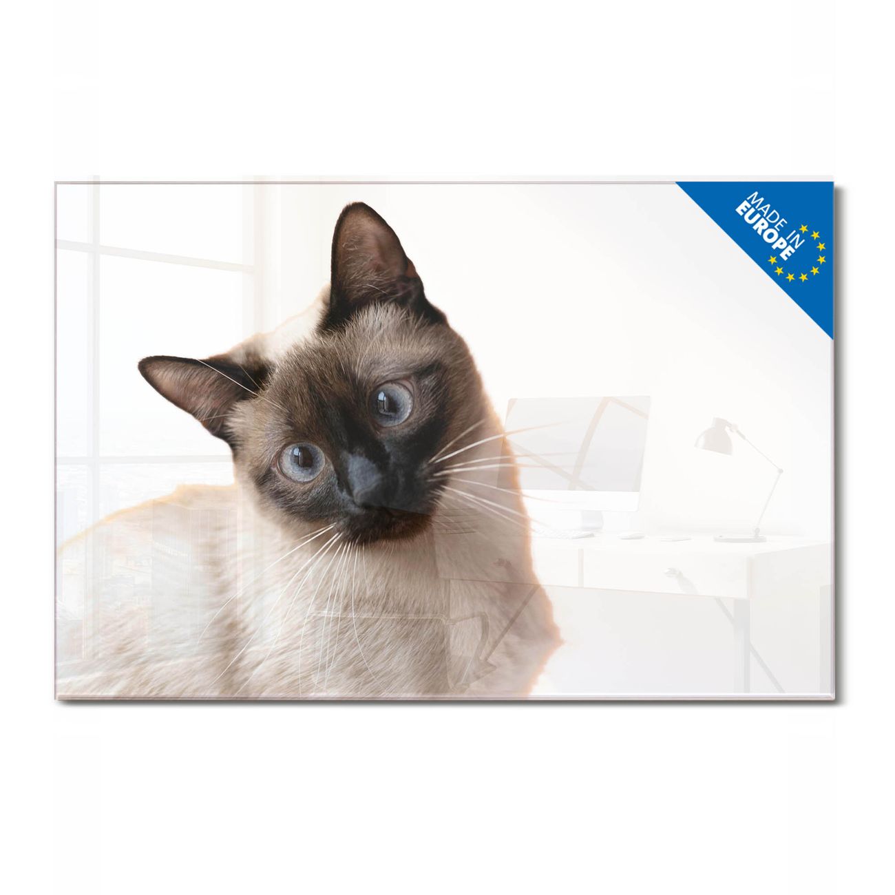 Ein Stück Design, das Ihren Alltag organisiert. Schreiben, heften, inspirieren - alles an einem Ort. Qualität, die man spürt. Montage leicht gemacht. Handwerk mit Herz - veredelt in Sachsen. Einzigartiges Design mit Motiv Motiv Porträt einer Siamkatze Beschreibbare Glasoberfläche, leicht zu reinigen Starke Magnetkraft durch Stahlrückwand Inklusive 4 Neodym-Magneten Flexible Montageoptionen Handveredelt in Sachsen - Qualität, die bleibt